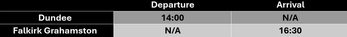 Our special train departs Dundee at a relaxed, sociable time, with convenient drop-off at Falkirk Grahamston. From Dundee, we follow the River Tay towards Perth before heading diverting towards Ladybank at Hilton Jn.